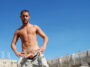 Nudiste britannique posant sur une plage à Las Palmas, Gran Canaria.