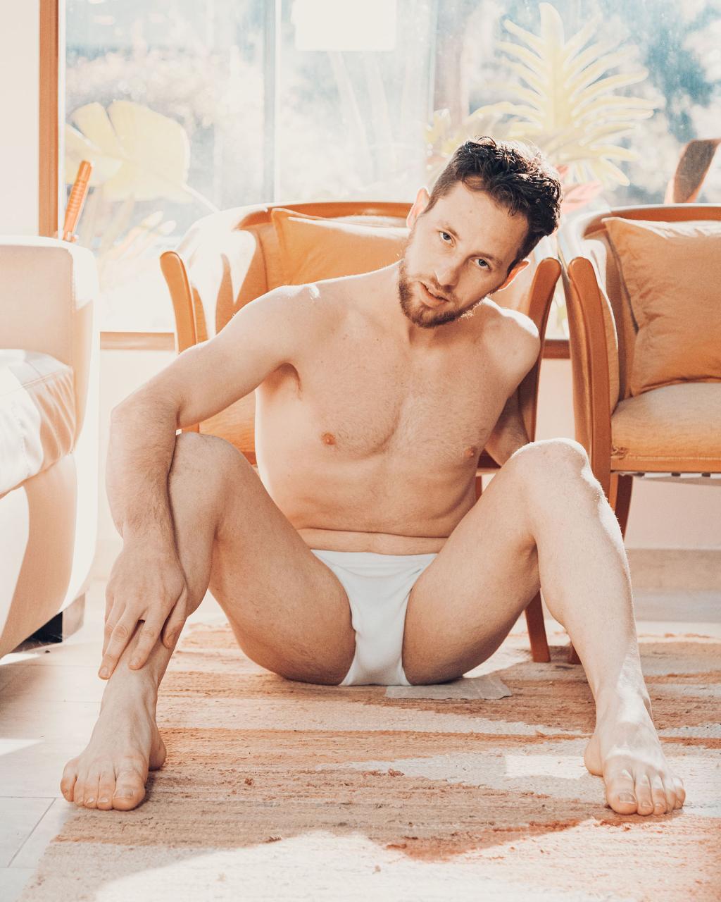 Beau brun tenebreux, belle gueule, jolie bite avec touffe et un cul a se damner.